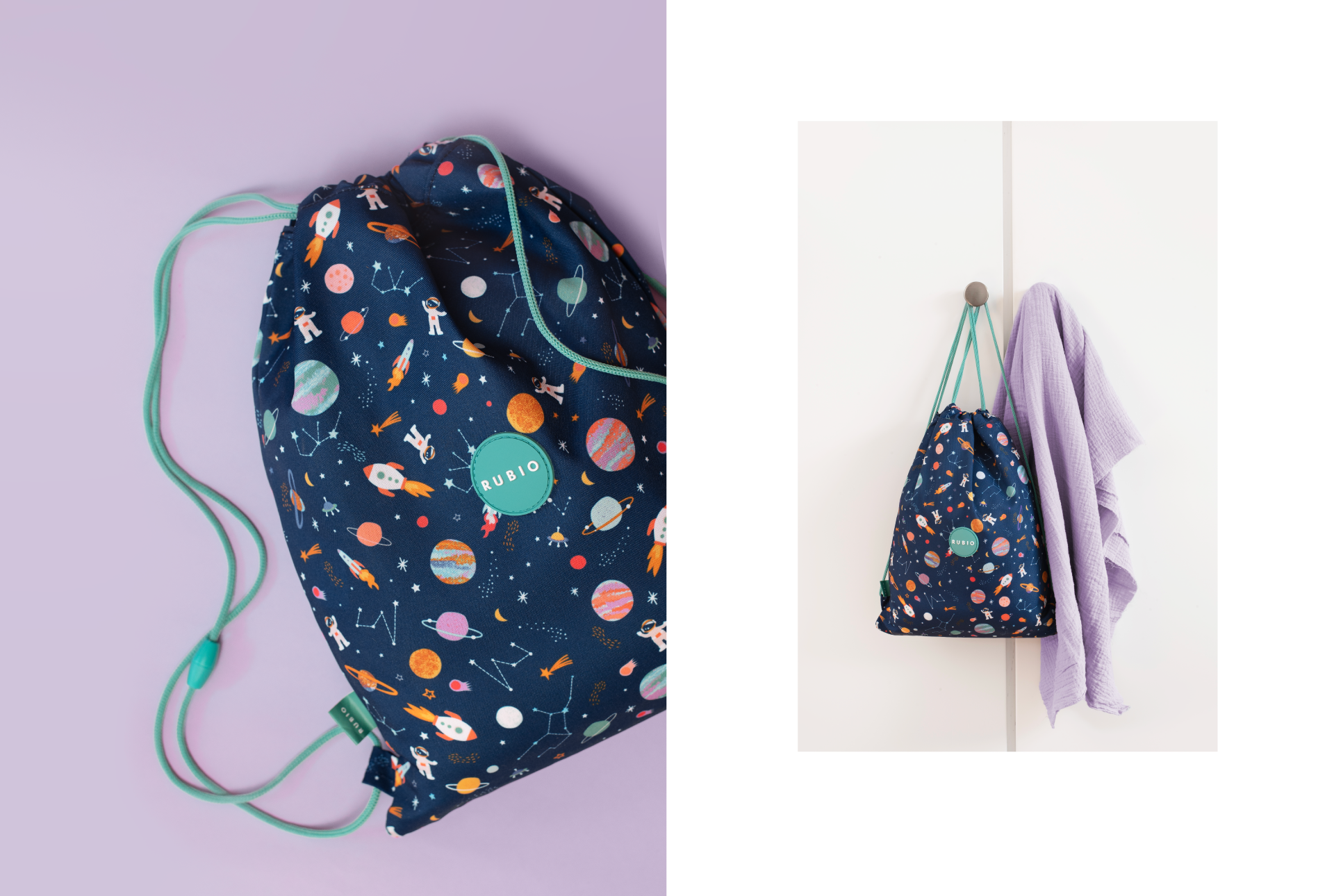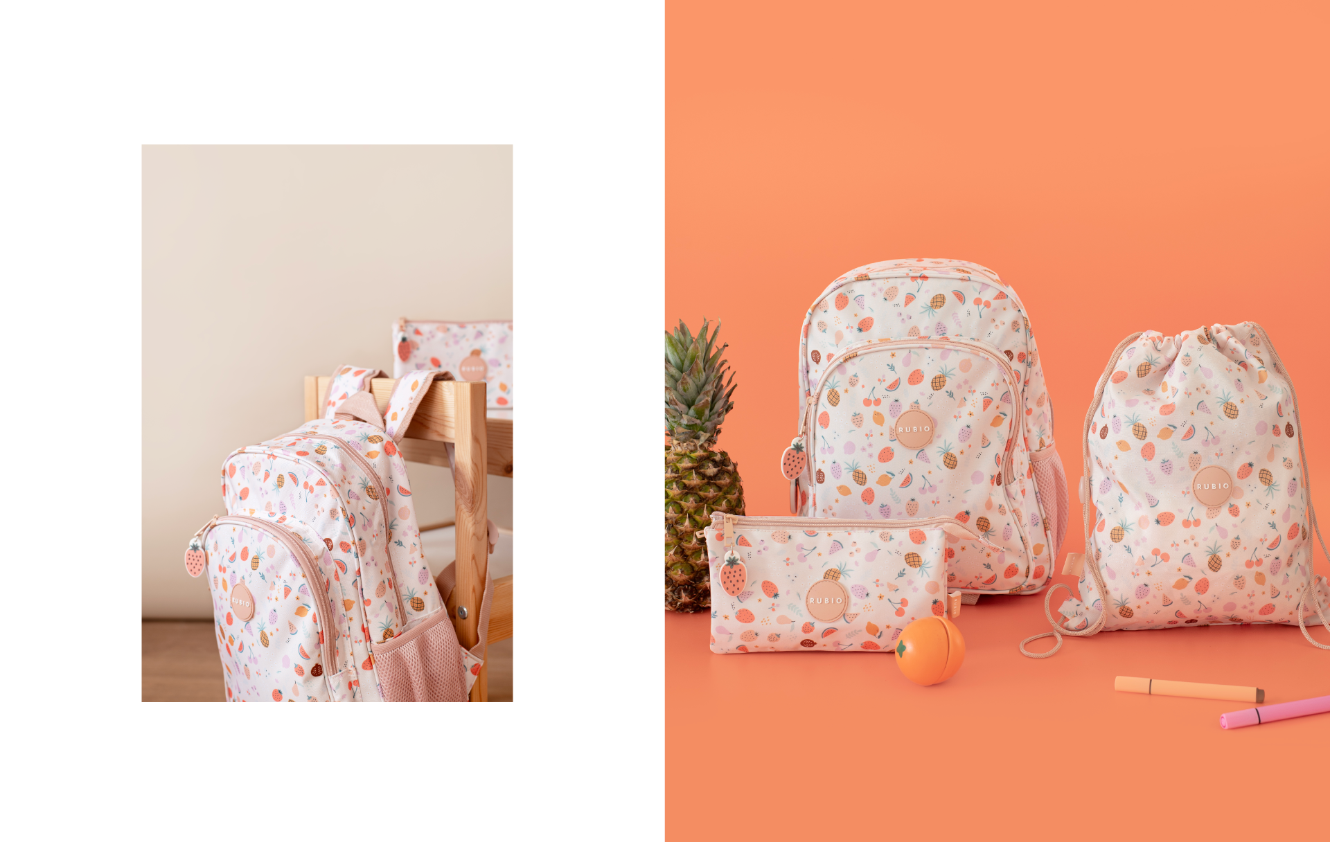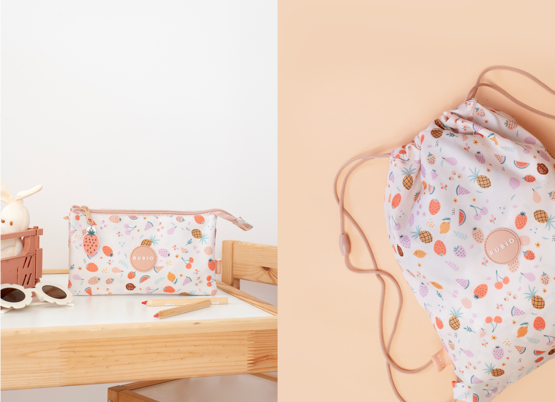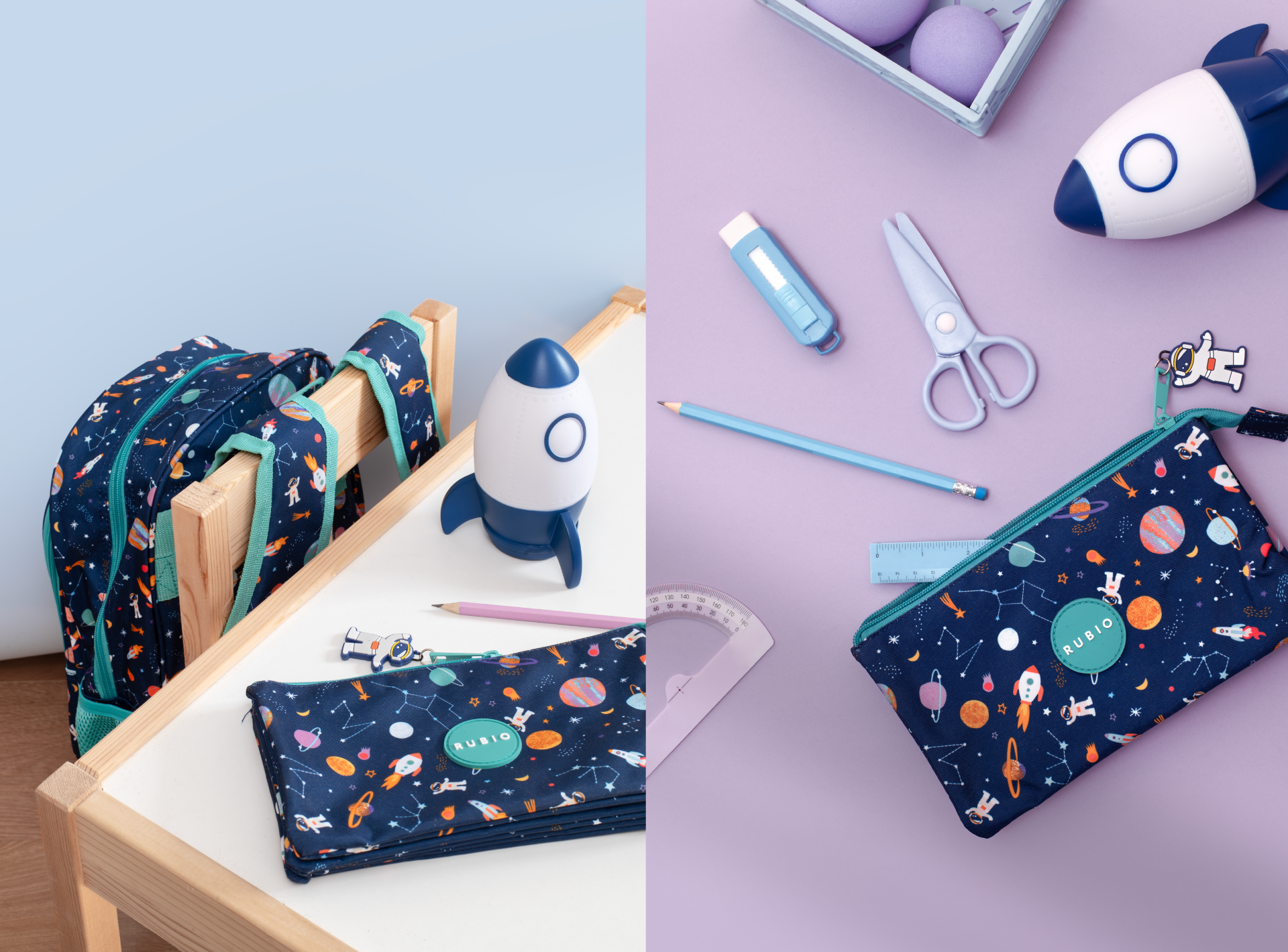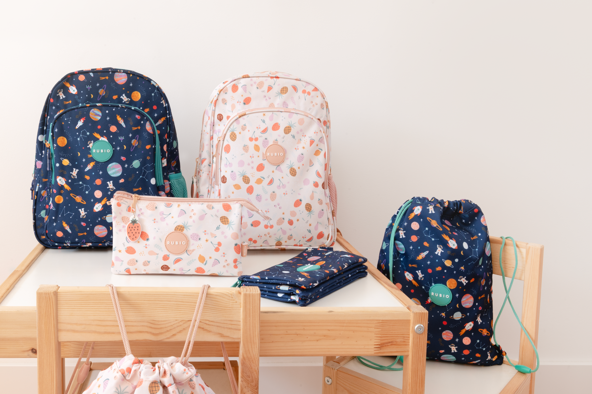 La propuesta busca conectar con el mundo infantil a través de formas sencillas, colores vivos y un estilo ilustrativo cercano y atractivo. Cada elemento del estampado está diseñado para potenciar la creatividad, el juego y la personalidad de la marca Rubio, referente en material educativo y productos para niños.
