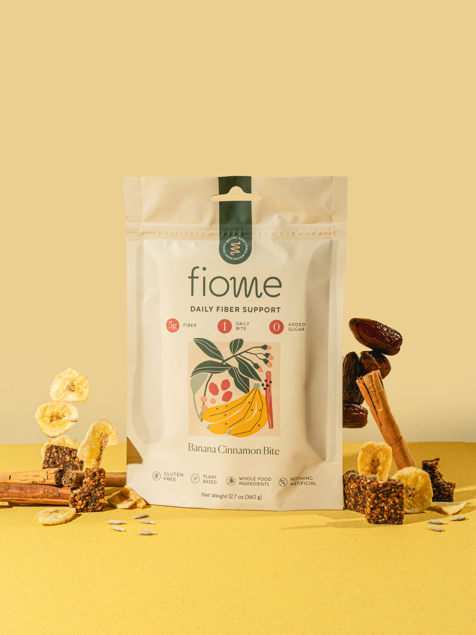 Fiome es una marca dirigida a mujeres jóvenes, activas y conscientes de su bienestar, que buscan snacks saludables hechos con ingredientes naturales. El principal reto del proyecto fue crear una identidad visual que reflejara no solo los beneficios de sus productos, sino también la filosofía de la marca: frescura, salud, feminidad y equilibrio. El diseño de la identidad visual de Fiome se inspiró en el movimiento intestinal reflejado en la letra m. El objetivo era crear un logotipo que transmitiera esta idea de fluidez y bienestar.