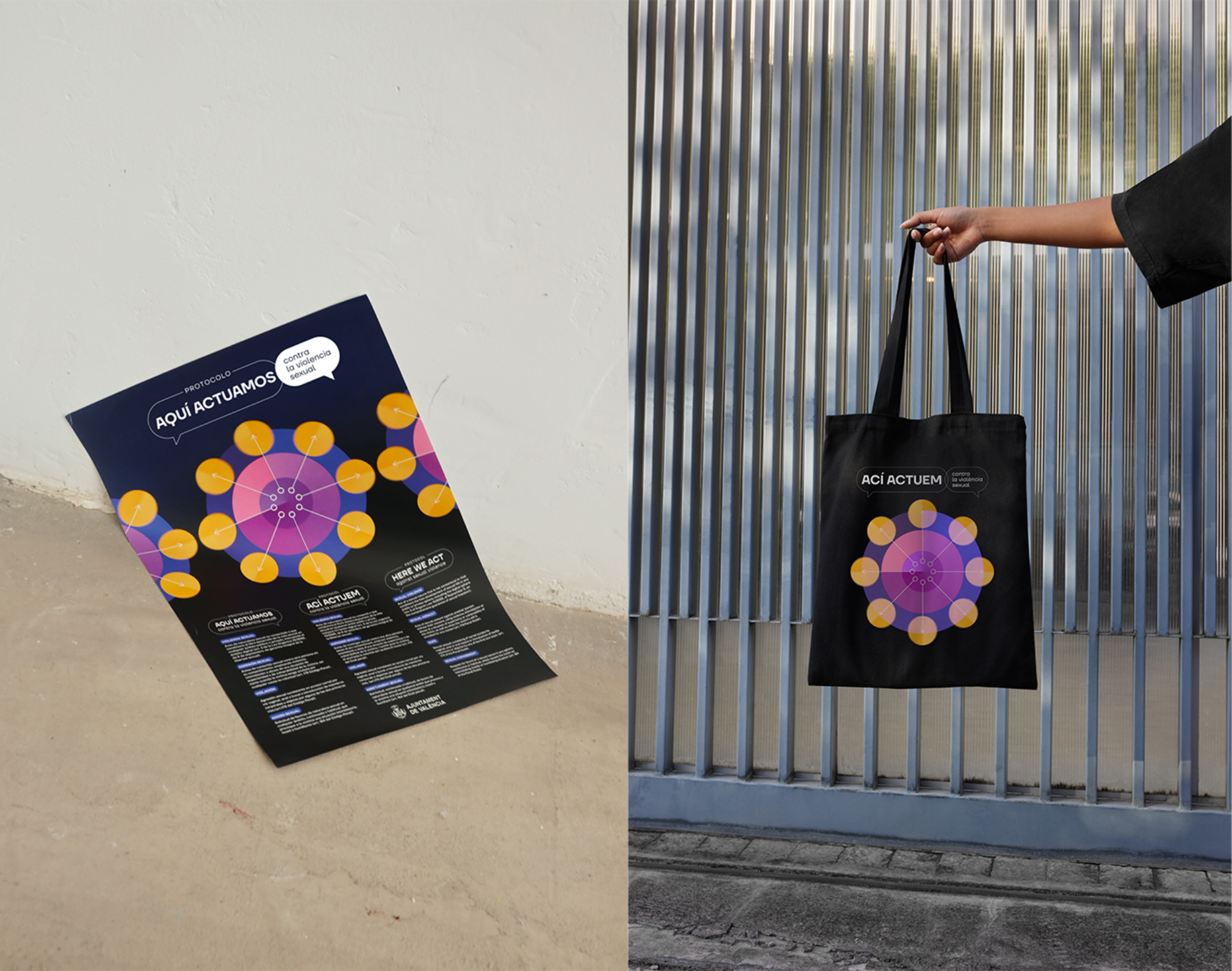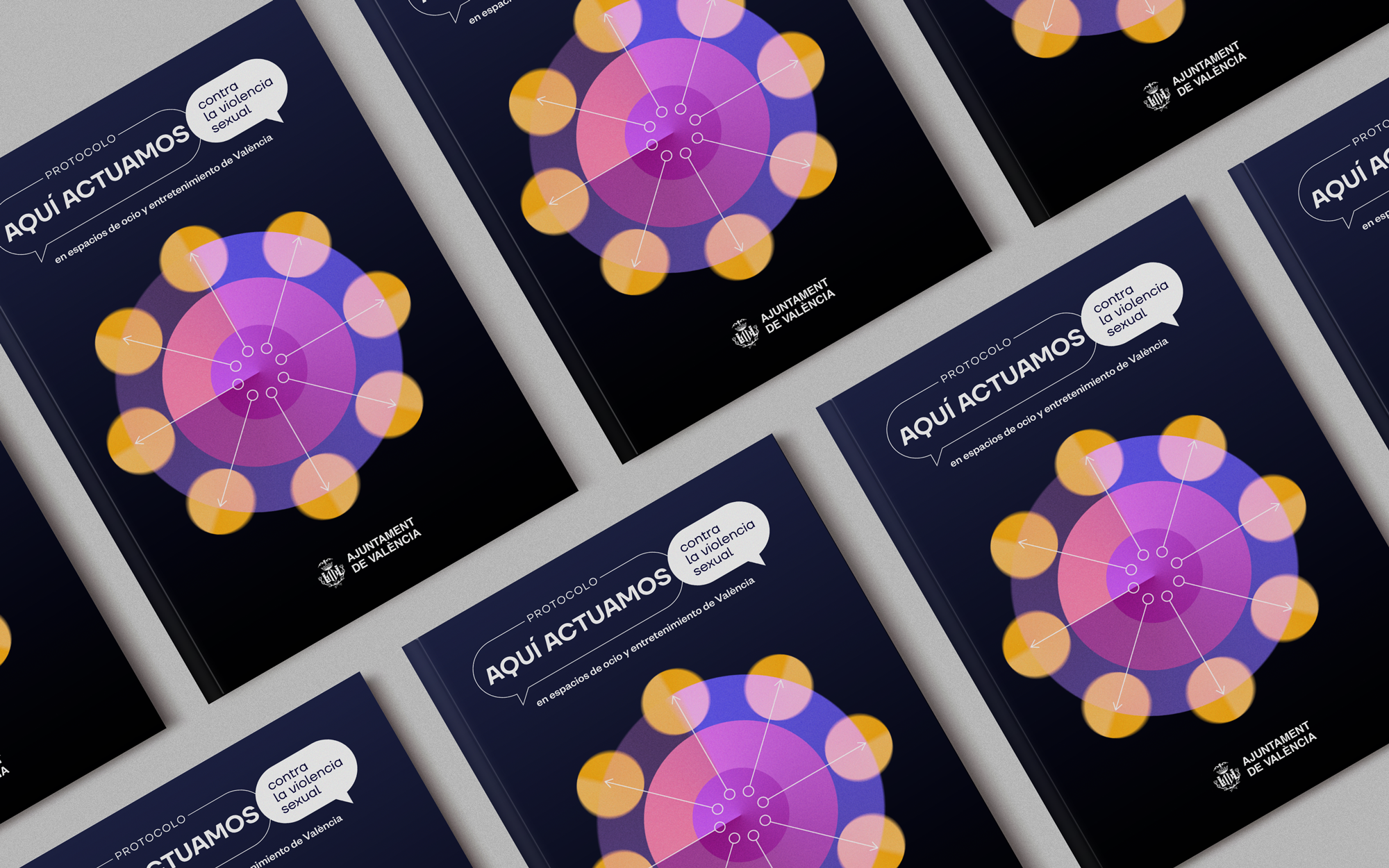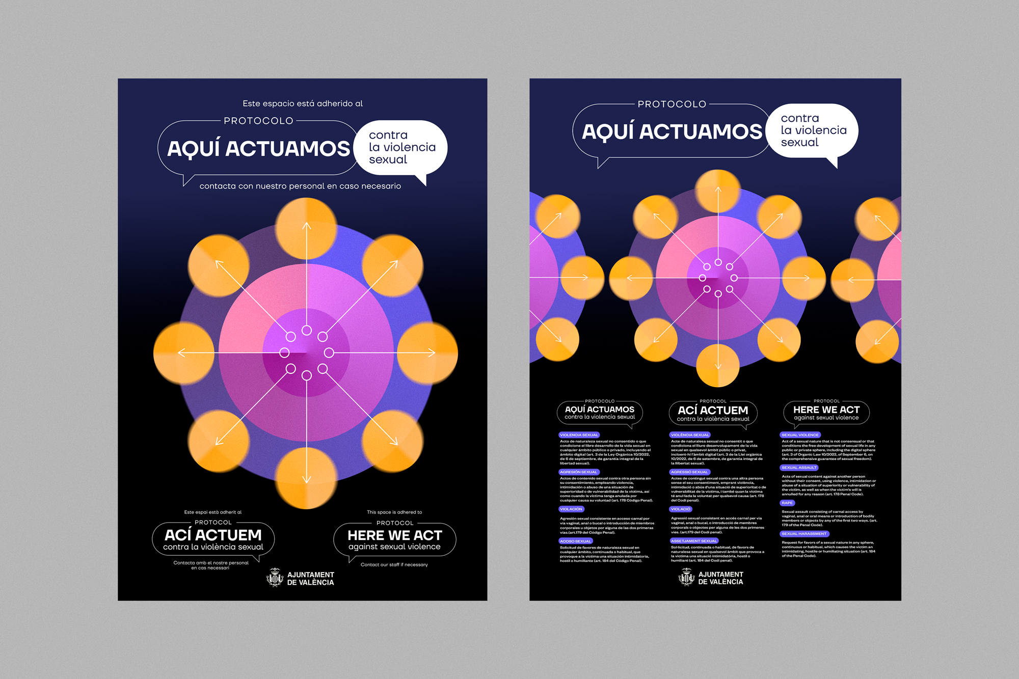 Diseño de la campaña gráfica y maquetación del Protocolo “Aquí Actuamos” contra la violencia sexual en espacios de ocio y/o entretenimiento.
