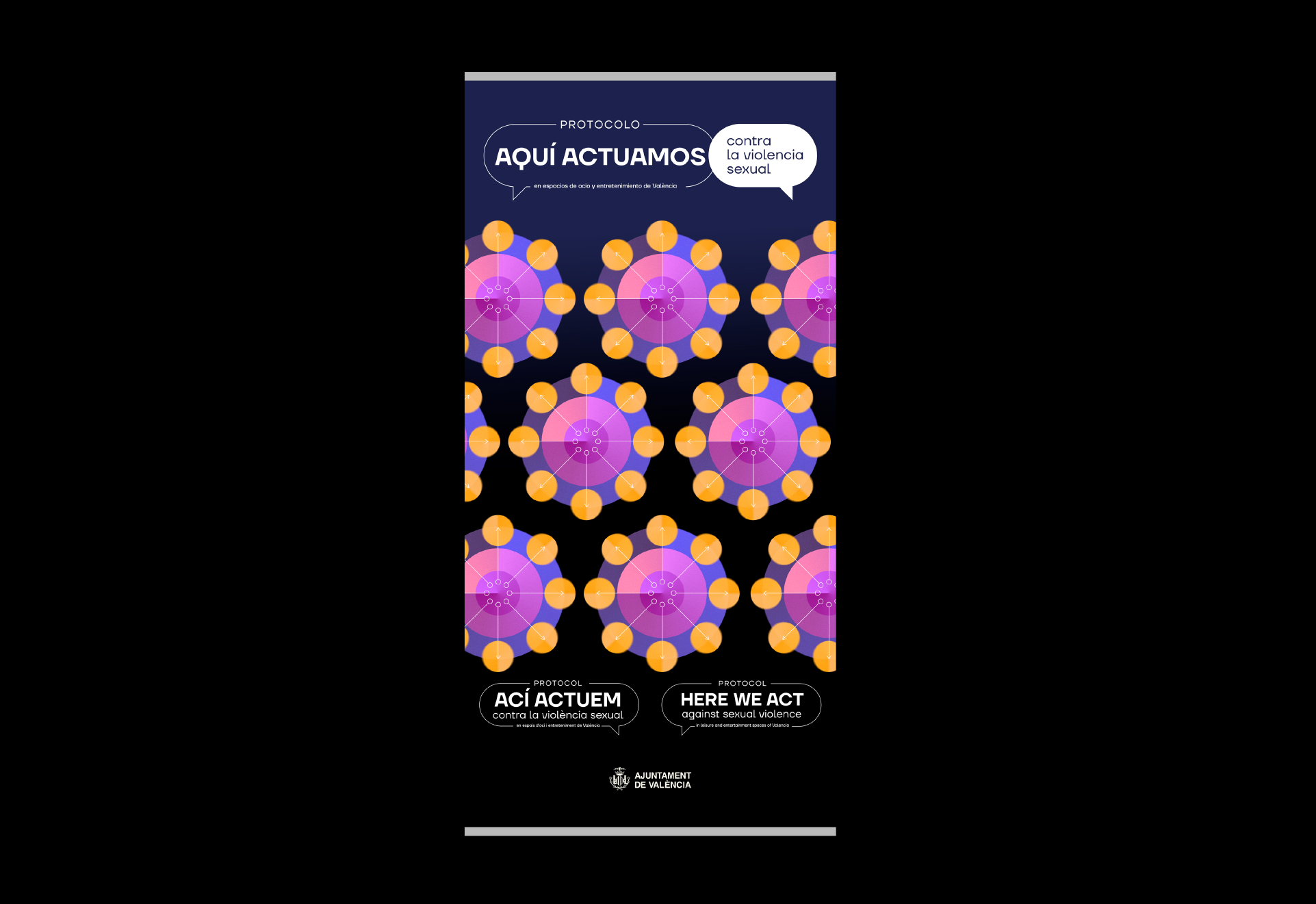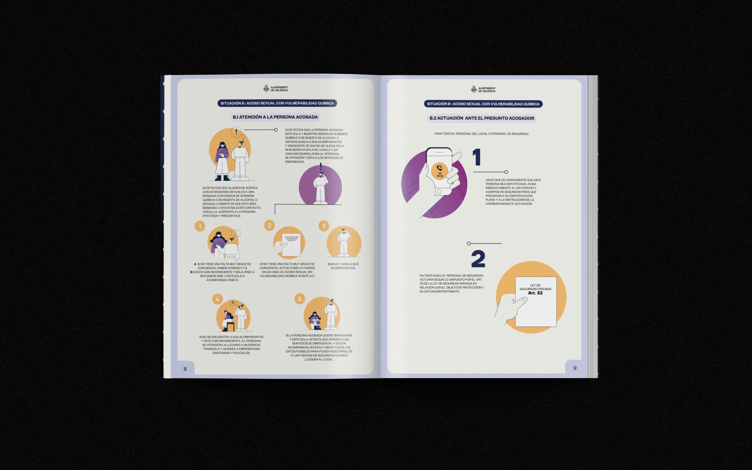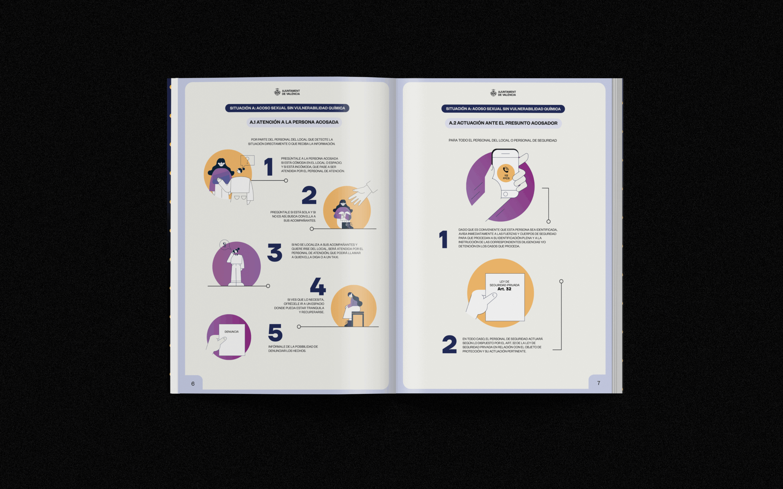 Diseño de la campaña gráfica y maquetación del Protocolo “Aquí Actuamos” contra la violencia sexual en espacios de ocio y/o entretenimiento.